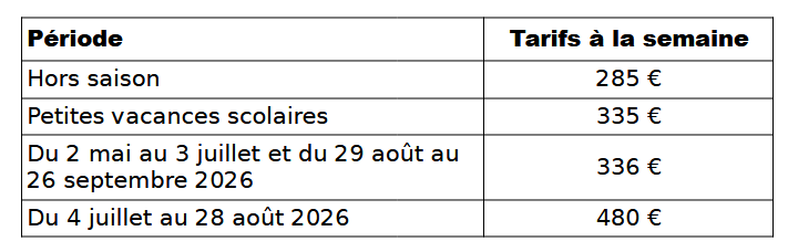 Hors période de vacances scolaire, il est possible de louer pour une durée plus courte. Tarif : à partir de 185 euros.